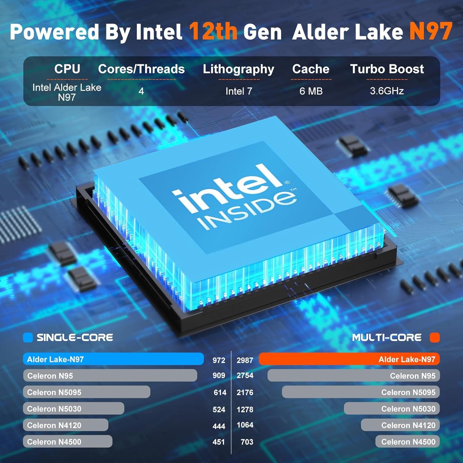 【HIGH PERFORMANCE LAPTOP】This AOC laptop powered by N97 processor frequency up to 3.6GHz turbo frequency. (performance is much higher than Celeron N5095/Pentium N5030/N100/N95) Built-in 16GB DDR4 and 512GB SSD and an integrated core graphics GPU, laptop Pre installed with Windows 11 system, its fast and reliable performance, can easily handle documents, web browsing and more powerful multitasking and other tasks, work and play at the same time!